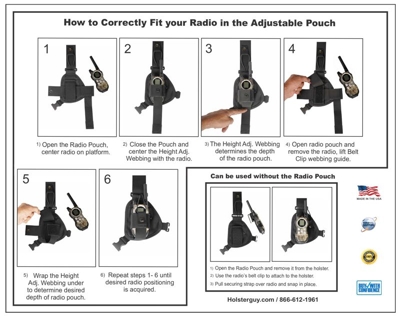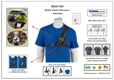 The Radio Chest Harness, RCH-103 is a low profile two way radio carrying solution. Radio pouch will hold radio's 3" to 5" tall.
