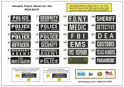 The Radio Chest Harness, RCH-601P is designed to create a system which quickly provides identification and professionalism for yourself and other members of your group. It has two Velcro base patches sewn onto the front and back of the radio chest harness. These base patches allow you to place custom identification patches on some or all members of your group. |