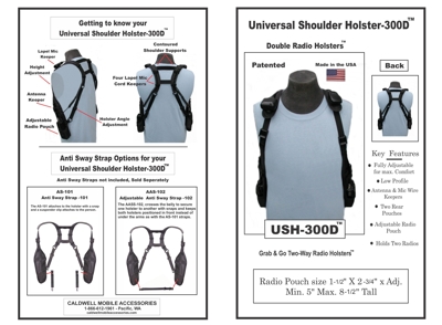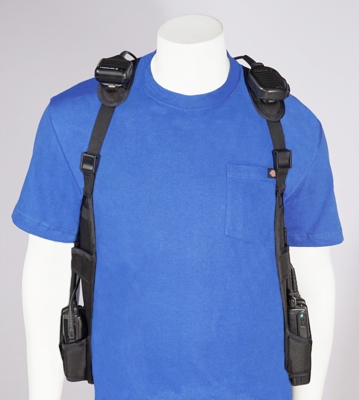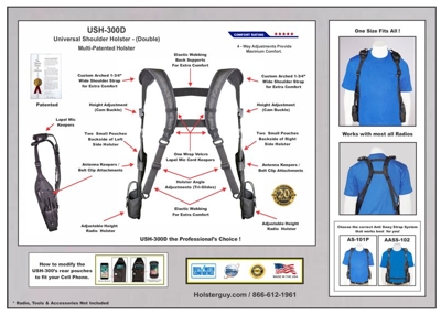 The Universal Shoulder Radio Holster, USH-300D shown above is an exceptional radio shoulder holster for individuals that must carry two radios at all times.