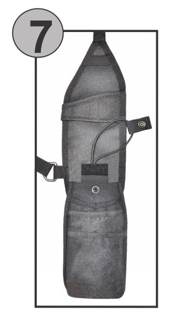 STEP 7) FOLD AND INSERT OPEN END OF THE STIRRUP STRAP BACK INTO THE HOLSTER’S POCKET AND ATTACH TO THE BACK WALL AT A SET HEIGHT TO BEST FIT YOUR TWO-WAY RADIO.